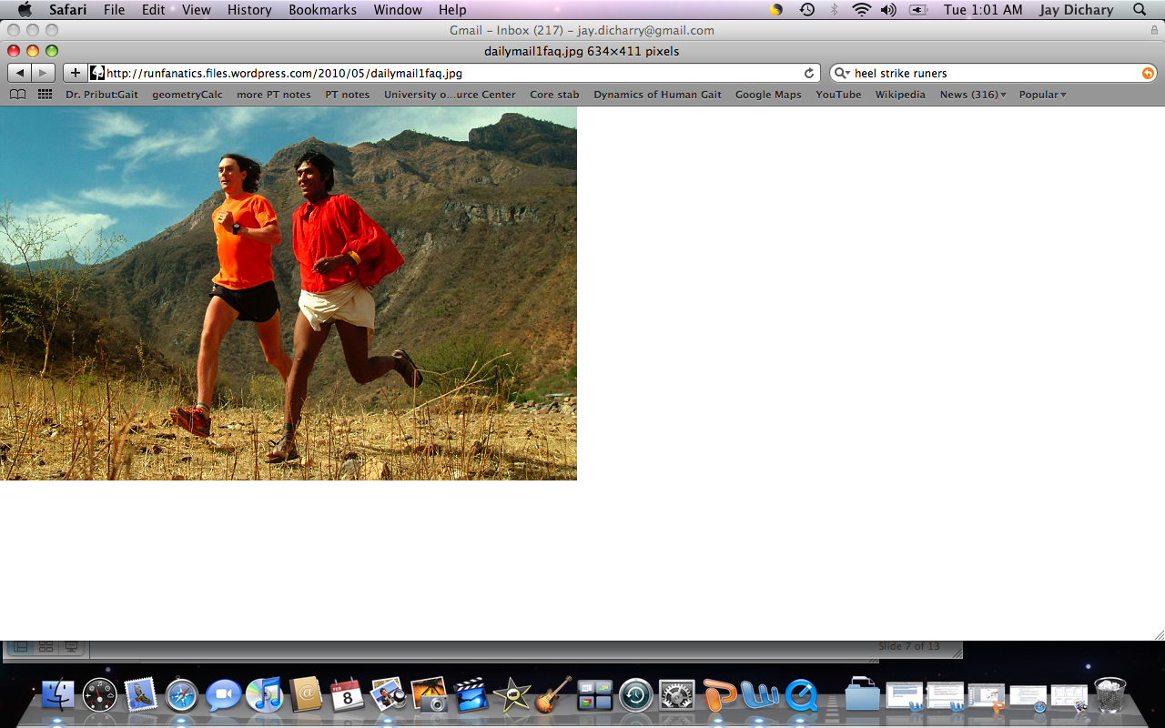 What gives? The media tries to make things simple. They say that “mid-foot” or “forefoot” is better than rearfoot. I love reading running forums where people with way too much time on their hands armchair quarterback running styles. They look at a picture or video of a contact pattern of some guy running across the screen and say “wow – nice midfoot strike –that runner is efficient.” They don’t know who the runner is, or what his time was for the race. They just saw a foot strike and proclaimed him efficient. Then they’ll scroll down and see some picture or video of some guy heel striking and proclaim that he/she is an “in-efficient” runner based on the heel strike. This “in-efficient” runner might be an in-efficient runner. Or it might be Meb Keflezighi (a runner who is just a bit faster and more efficient and than most of your reading this post).  You see, these arm chair-quarterbacks aren’t very good at identifying efficient gait. Fancy force plates are. I do this for a living and still need data from my lab to give me the answer because no one can actually see forces. So what have we learned from these fancy force plates?  Its NOT rear-foot or midfoot or forefoot that matters – its where the foot contacts in relation to the body’s center of mass.