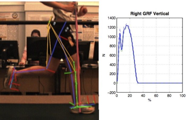 Lastly – gait cueing and limb stiffness. Here’s where things come together, but also show need for additional research. In our lab, when we get someone with high loading rates, we show them their ground reaction force plots in real-time as they run, and ask them to change it. Normally, we don’t tell them how, we ask them to “play” with their graph shape as they run. Most runners figure out how to minimize their loading rates by getting visual cues, or feedback. This is the best way since the runner is aware of the conscious modifications they are doing to alter their loading rates and can see instant feedback to observe success – thus learning! If they don’t “get it”, we guide them through the technique modification so they can see the effects of their form changes as they run. Again – the goal is to get the runner to retain this sensation so they can alter their gait to make long-term changes to decrease tissue stress.  On the simpler side, research has been done that simply told runners to “run soft”. These individuals were found to decrease their loading rates. Gait cueing works. How does it work? People modify their contact style, posture, and their limb stiffness to achieve a desired result. Limb stiffness relates to how compliant the runner maintains the knee to modulate the rise and fall of the center of mass. There is more work to be done here to dig deeper, but this should hopefully answer the bulk of questions for now.